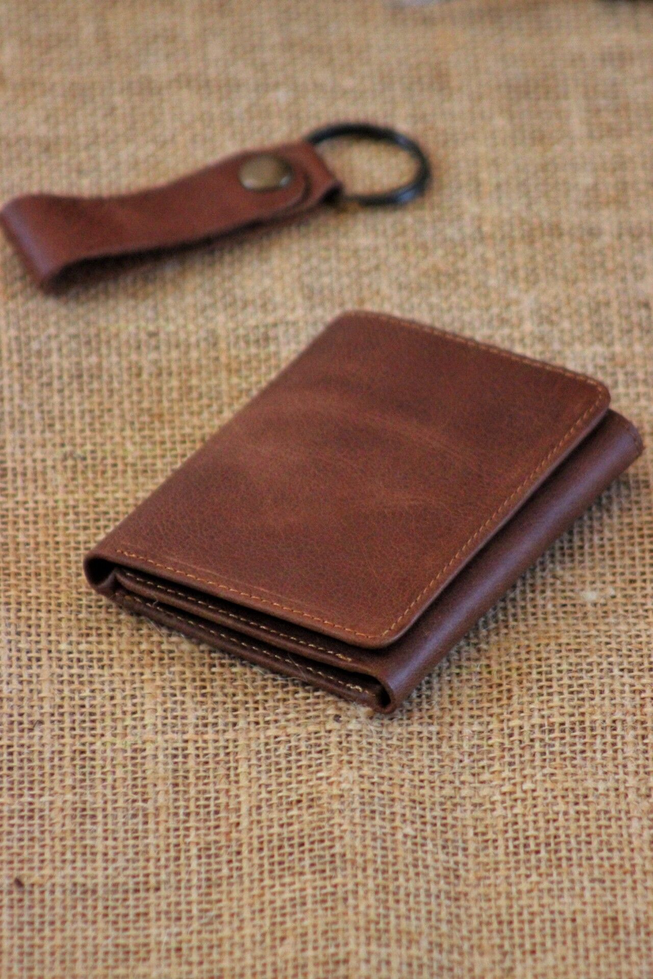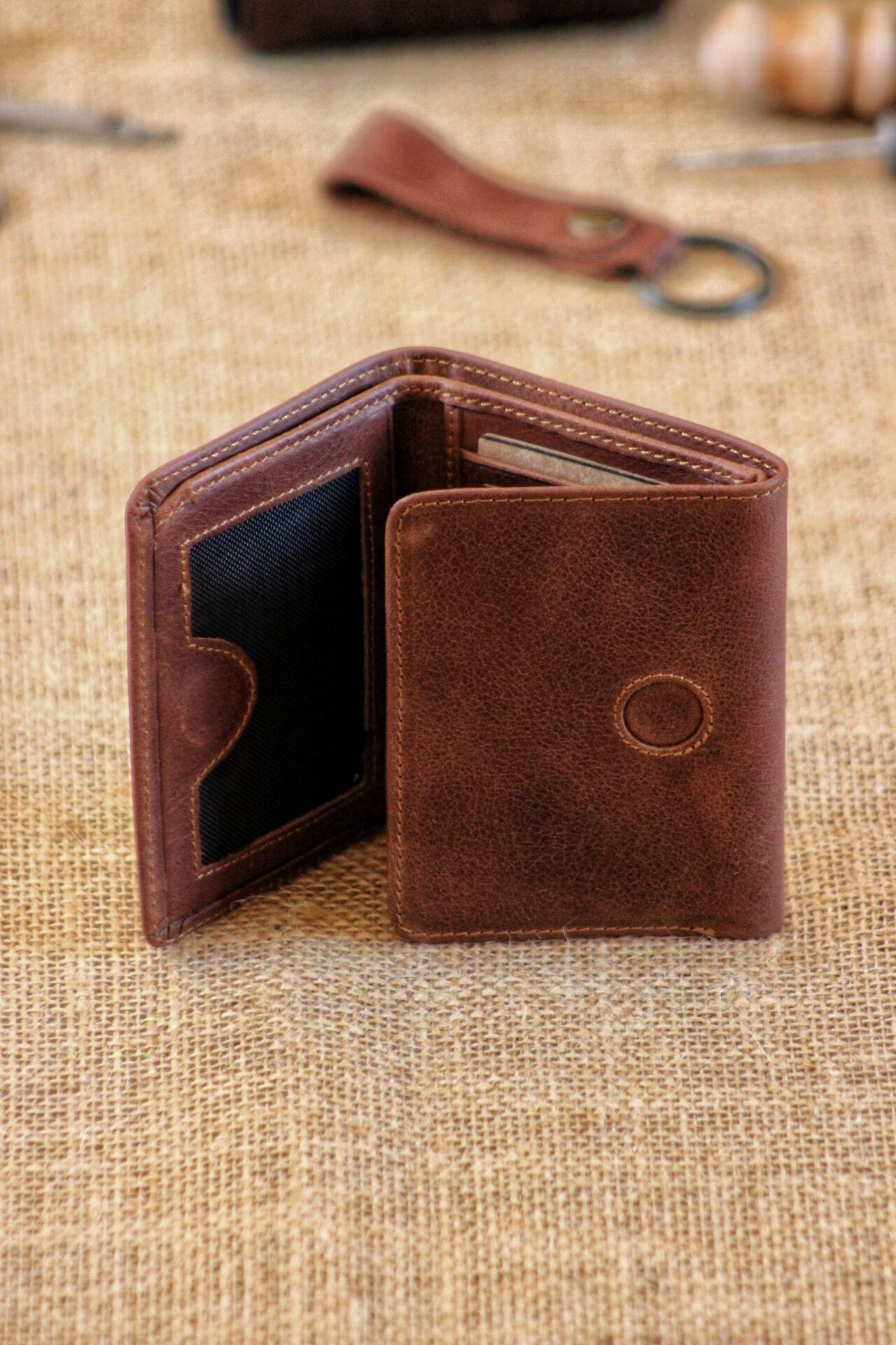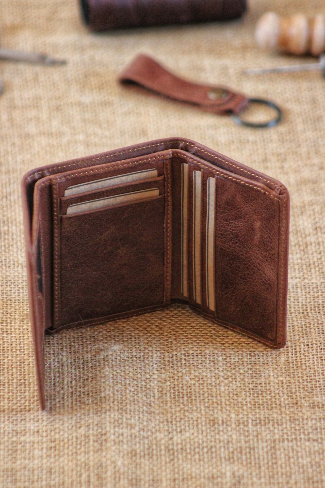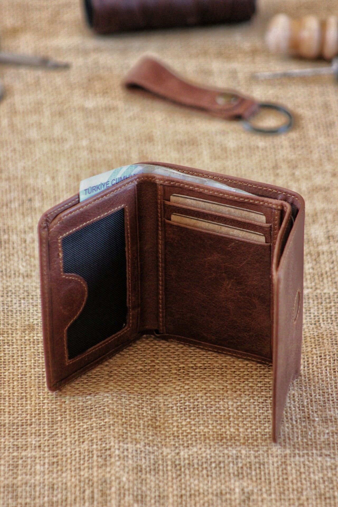 Hakiki Deri Mıknatıslı Dik Cüzdan | Anahtarlık Hediyeli ve Hediye Kutusunda | Koyu Taba